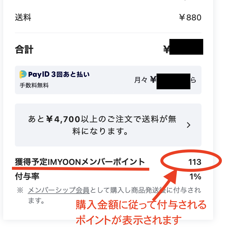 こちらを確認いただきましたら、決済するとポイント加算されます。